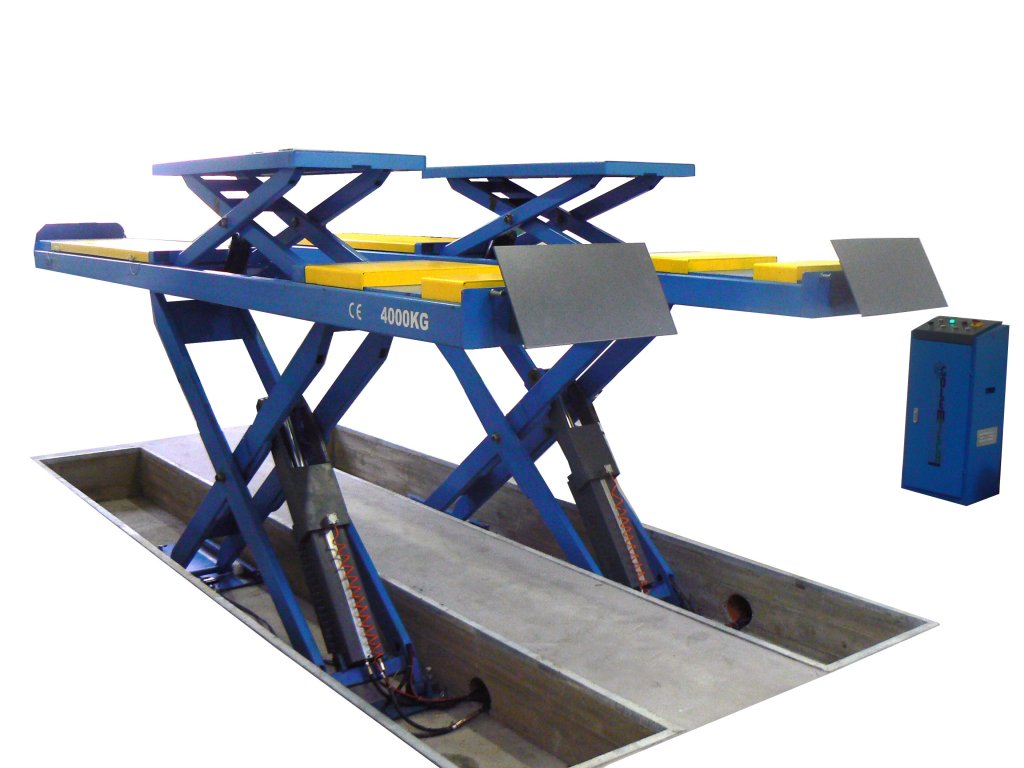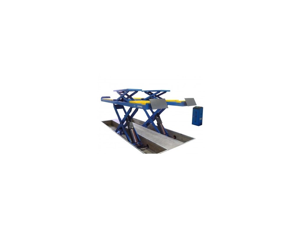 Technicky prepracovaný zdvihák s nožnicovou konštrukciou, určený predovšetkým pre meranie a nastavovanie geometrie kolies (inak povedané geometria náprav) automobilov: má vybranie pre predné otočné plošiny, integrované zadné pohyblivé plošiny a nožnicový přízdvih.