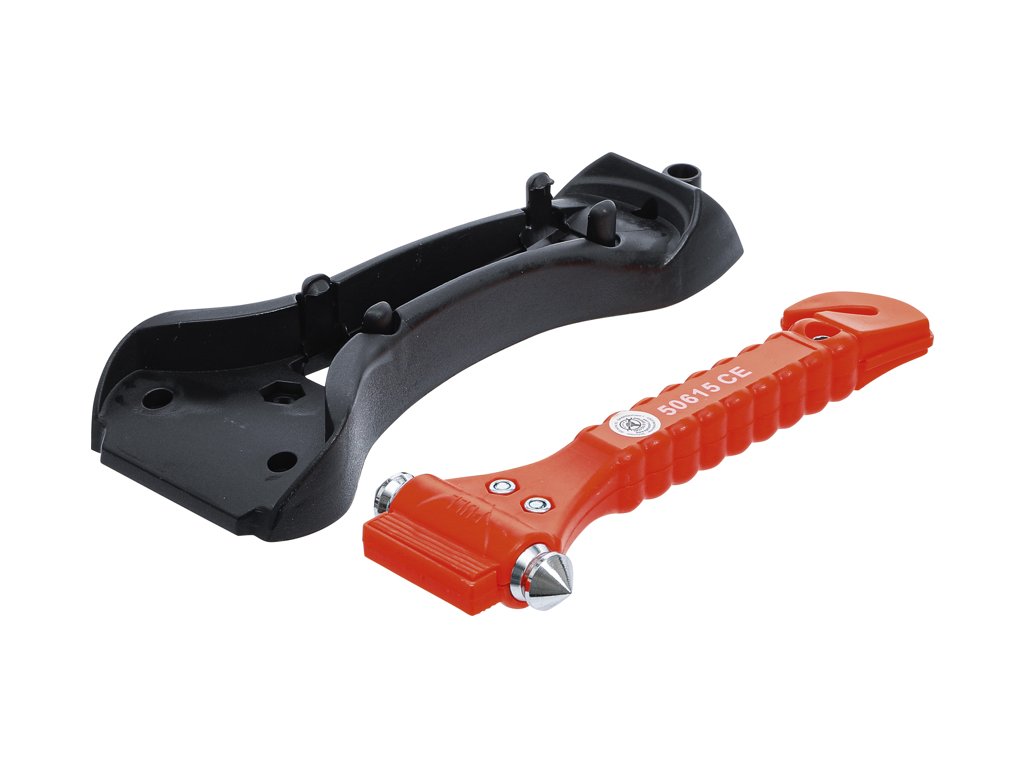 Záchranné kladivo na núdzové vyslobodenie z vozidla, v držiaku - BGS Do It Youself (Kraftmann) 50615