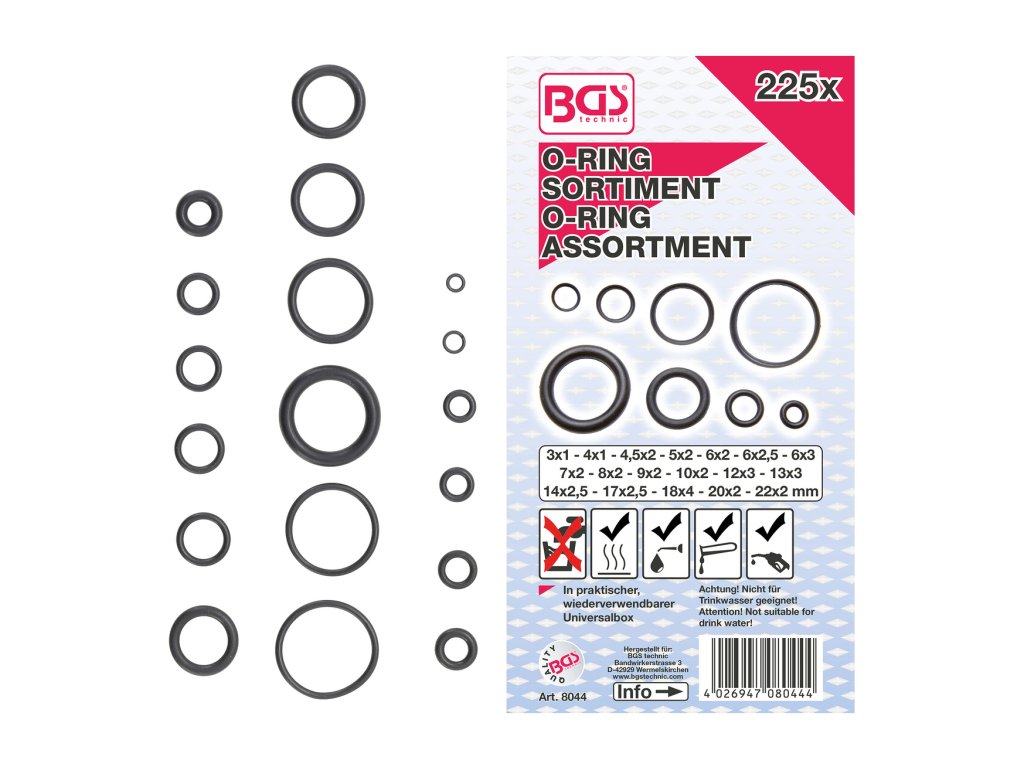 O-krúžky 225 ks, 3-22mm
