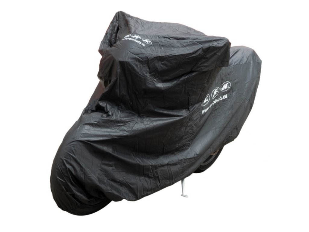 Univerzálna plachta na väčšie motorky s objemom cca 500-1000 ccm pre vonkajšie parkovanie v lete aj zime. Chráni stroj pred vetrom, dažďom, snehom, slnečným svitom a ďalšími poveternostnými vplyvmi. Je vodotesná, odolná UV žiareniu a mrazuvzdorná. Vďaka priedušnému materiálu sa pod ňou nehromadí vlhkosť. Na úrovni spätných zrkadiel sú zakryté otvory, ktoré zaisťujú cirkuláciu vzduchu vo vnútri.
