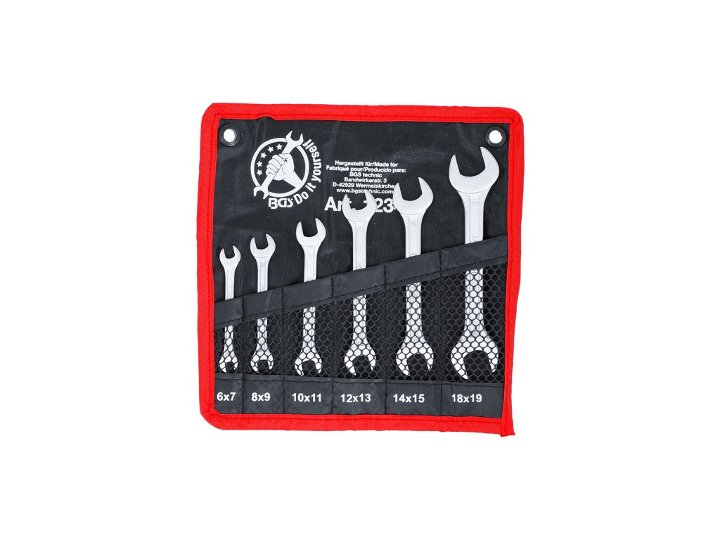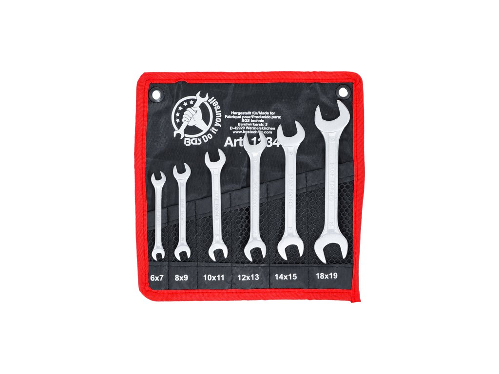 Súprava obojstranných kľúčov s otvoreným koncom, rozmery 6 až 19 mm, 6 kusov v tetrónovom puzdre - BGS Do it yourself 1234