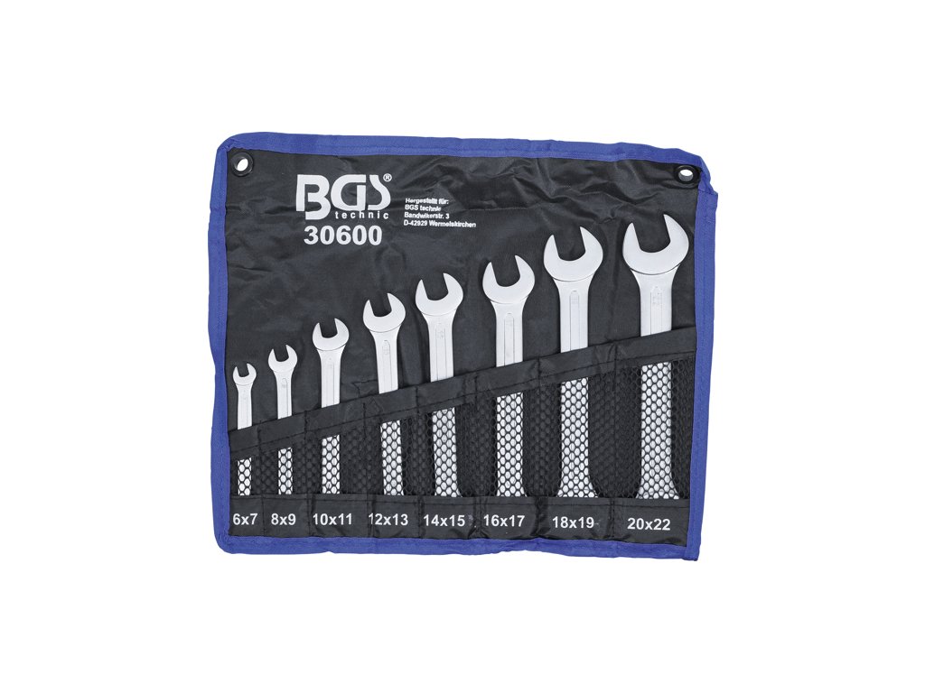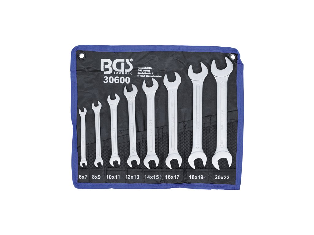 Sada obojstranných kľúčov s otvoreným koncom, rozmery 6 až 22 mm, 8 kusov v tetrónovom balení - BGS technic 30600