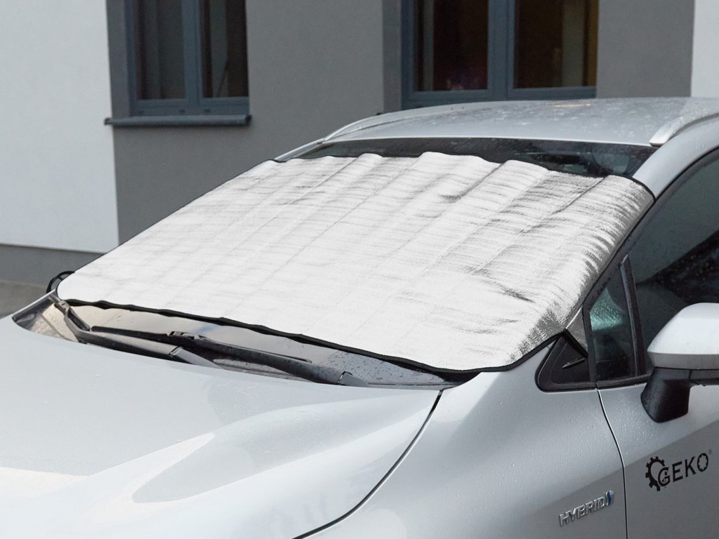 Praktická plachta na ochranu čelného skla vozidla pred znečistením alebo mrazom.