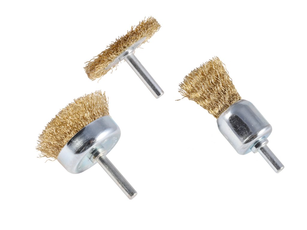 Oceľová kefa do vŕtačky, pomosadzaná, sada 3 ks, 6 mm unášač do vŕtačky – QS14041