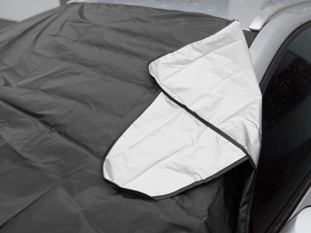 Praktická plachta na ochranu čelného skla vozidla pred znečistením alebo mrazom.