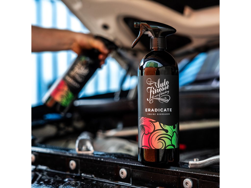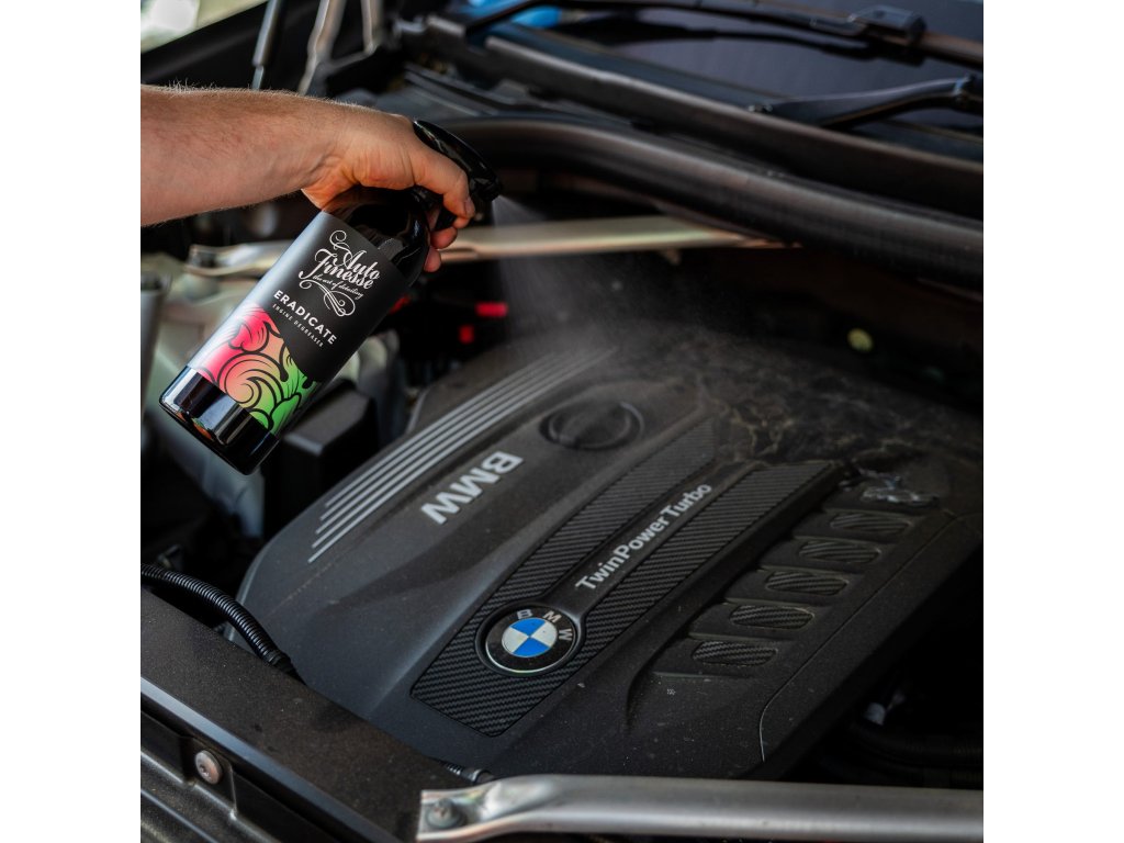 Eradicate je nevyhnutný na hĺbkové čistenie motorového priestoru! Tento výkonný odstraňovač mastnoty je čistič motora špeciálne vyvinutý na odstraňovanie mastnoty a zapečenej cestnej špiny zo všetkých povrchov pod kapotou, od laku až po holý kov, plastové a gumové obloženie.