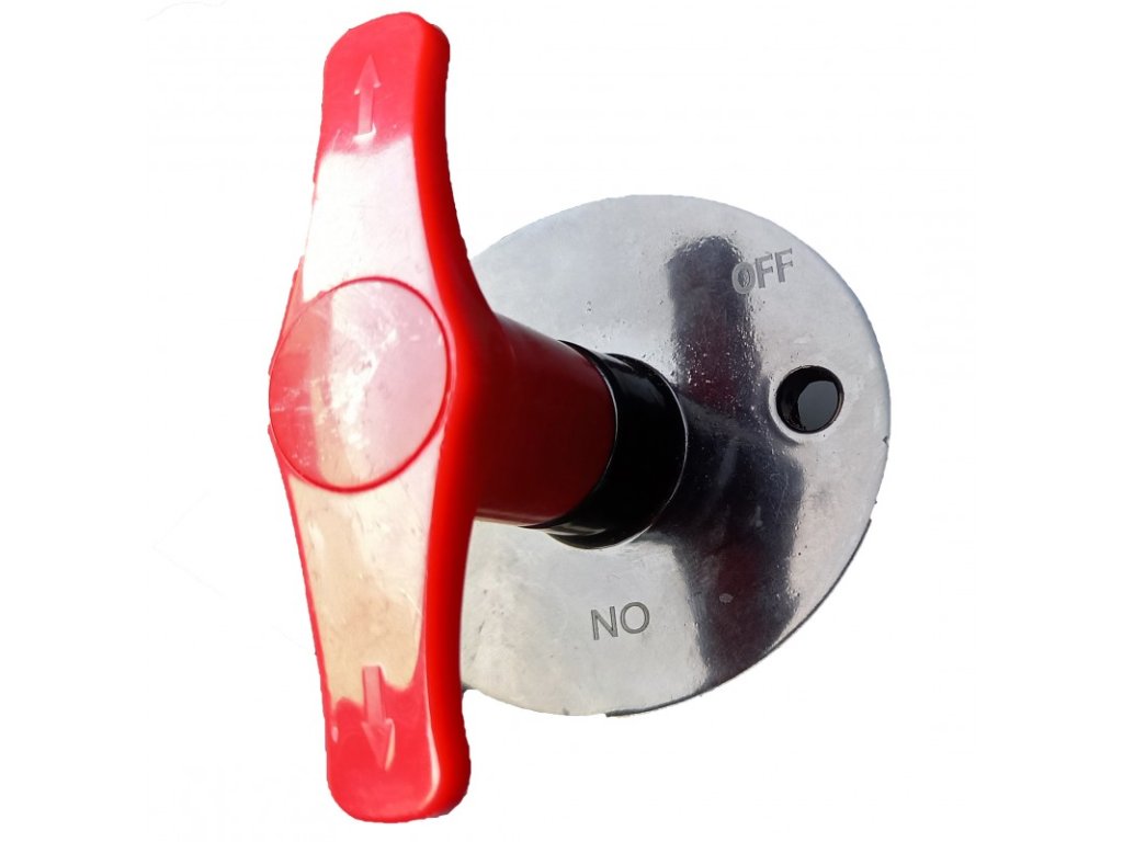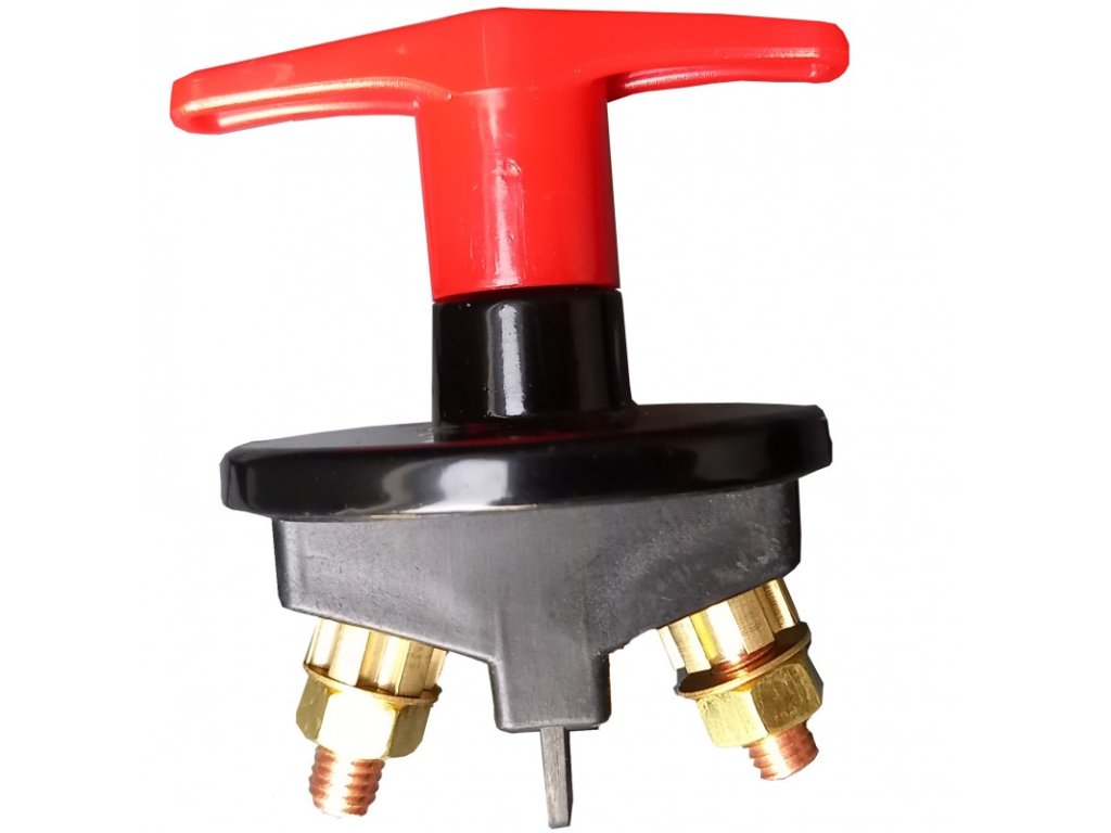 Odpojovač sa zapája ako prerušenia prívodu od autobatérie, je vybavený dvoma kontakty s priemerom 10 mm.