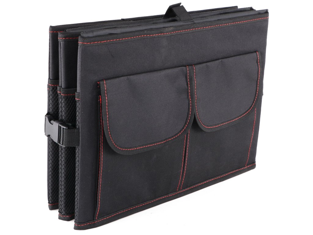 Skladací organizér do kufra auta je určený na uloženie rôznych predmetov, nákupov, povinnej výbavy atď. Vodotesný organizér má 3 veľké priehradky a 11 bočných vreciek, do ktorých sa zmestia predmety rôznych veľkostí a tvarov.