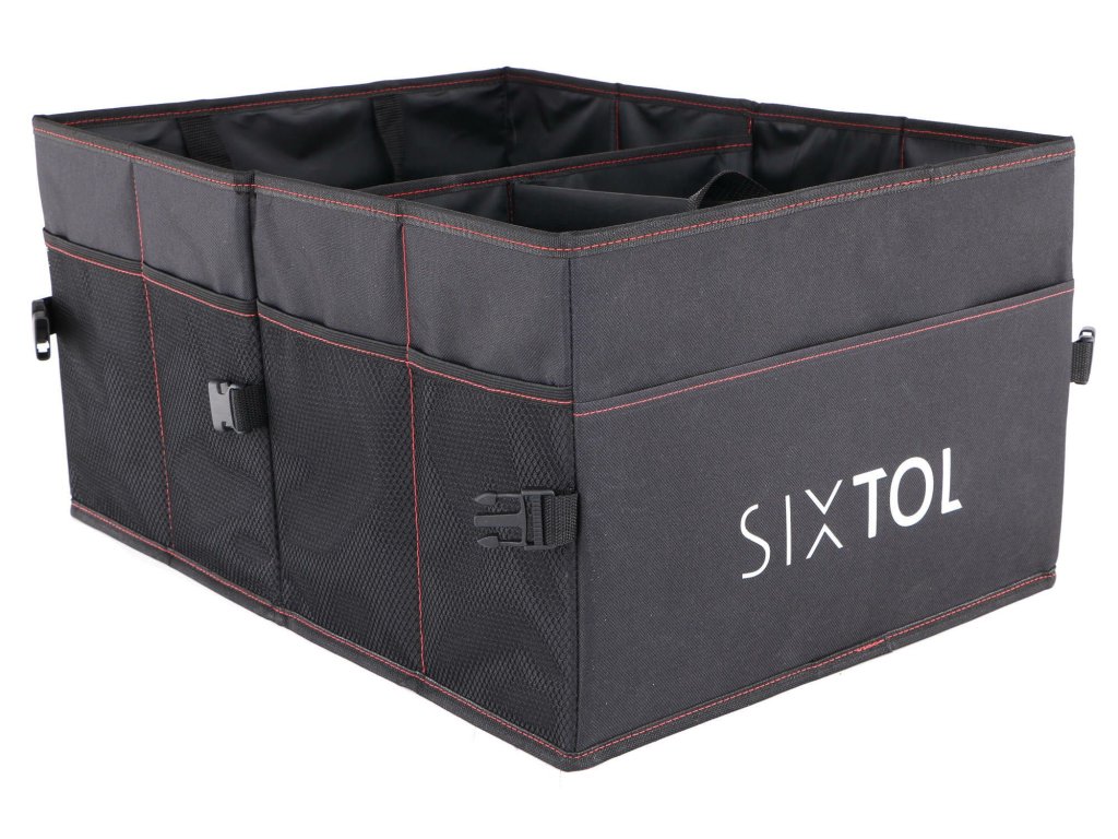 Organizér do kufra auta, 3 priehradky a 11 vreciek, s rozmermi 54x44x26 cm, skladací, v čiernom prevedení - SIXTOL SX1061.