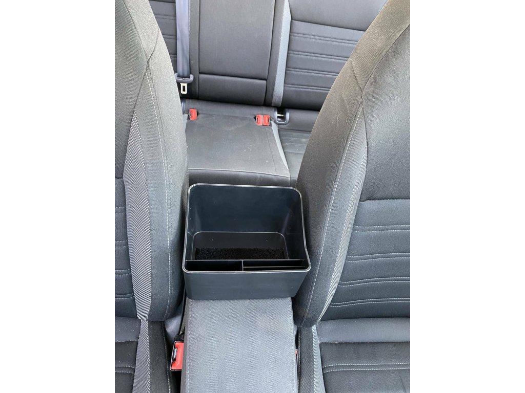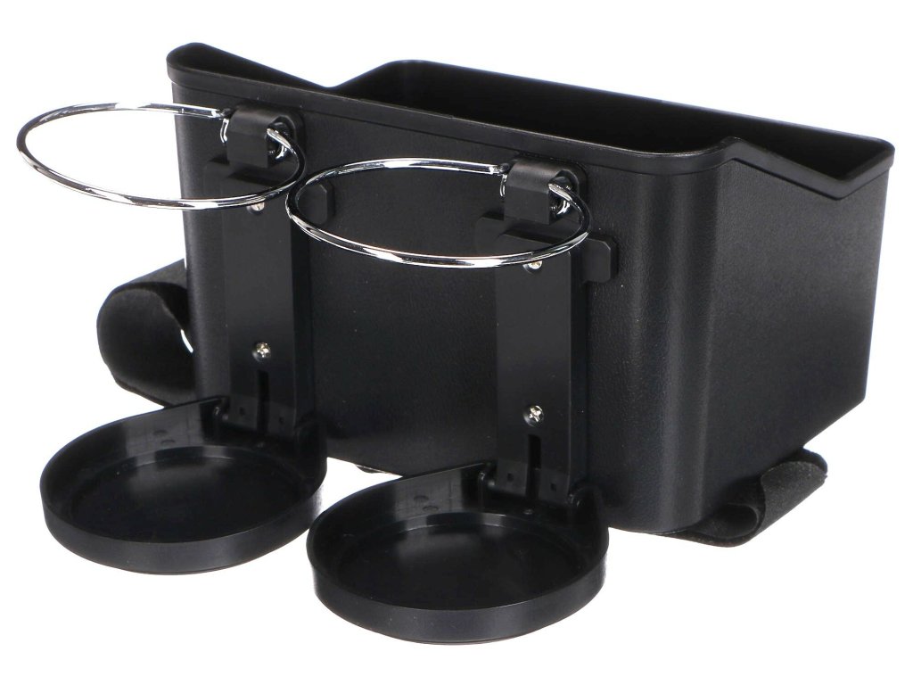 Praktický organizér na lakťovú opierku a držiak na poháre zlepšuje organizáciu nevyužitého priestoru na lakťovej opierke.