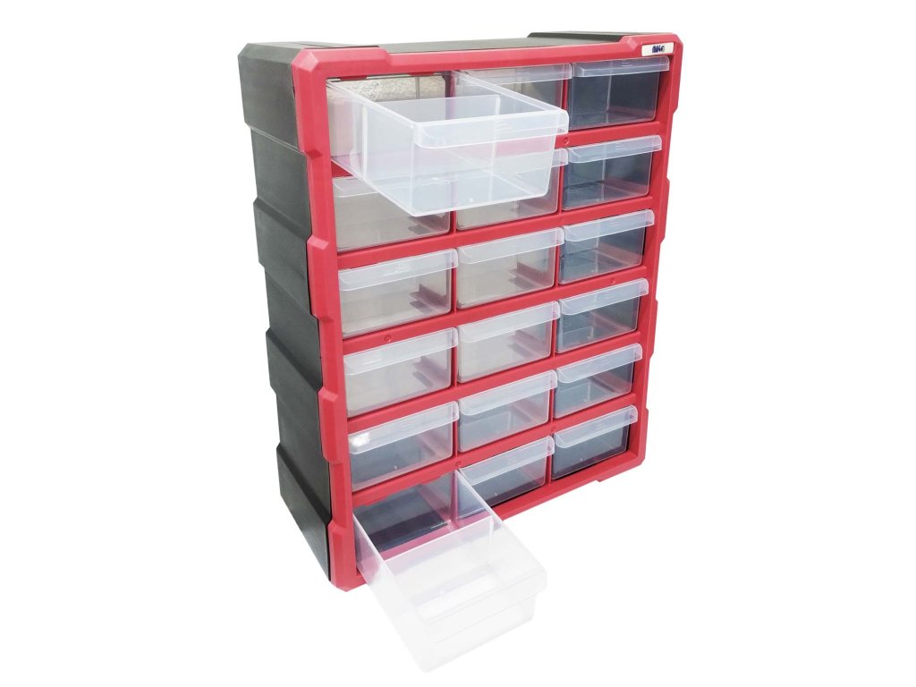 Organizér - plastová skrinka, 18 zásuviek, červená - MAGG 120299