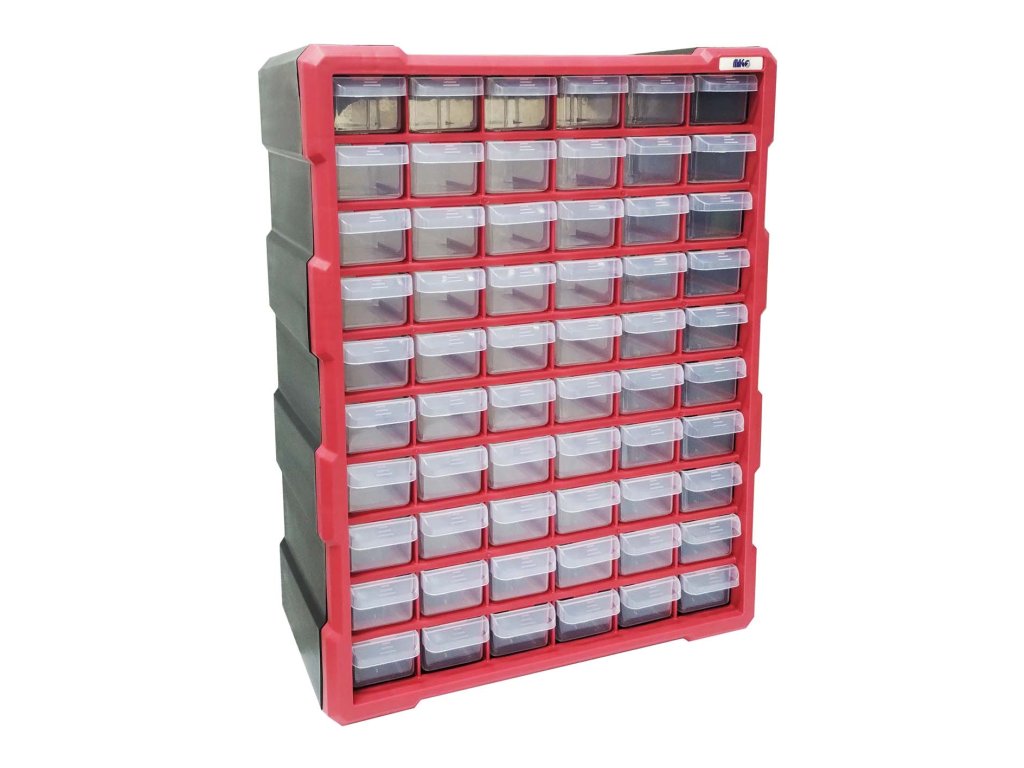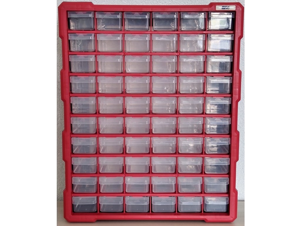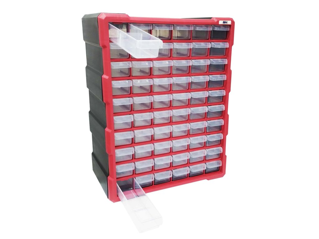 Organizér - plastová skrinka, 60 zásuviek, červená - MAGG 120298
