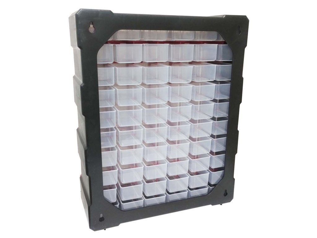 Plastová skrinka so 60 zásuvkami je nevyhnutnou možnosťou úložného priestoru pre vašu dielňu. Je ideálna na ukladanie drobných predmetov, ako sú vrtáky, skrutky, klince, matice, podložky, kliešte, skrutkovače a mnoho ďalšieho. Skriňa je vyrobená z odolného plastu. Vďaka priehľadným zásuvkám budete mať vždy prehľad o uložených predmetoch.