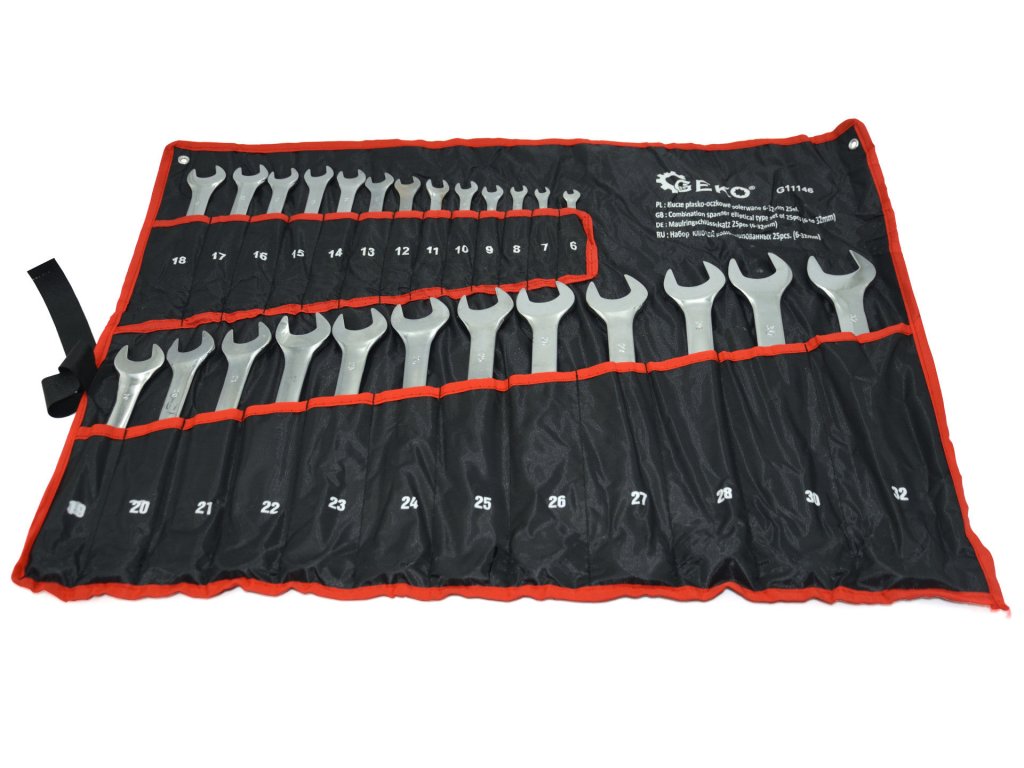 Ploché kľúče s otvoreným koncom, 6-32 mm, sada 25 kusov, textilné puzdro - GEKO G11146.