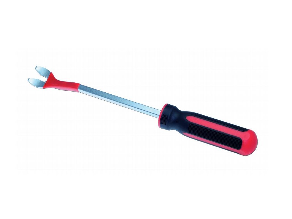 Praktické páčidlo s koncom v tvare vidlice pre jednoduché a rýchle zloženie dekoratívneho krytu z ráfiku kolesa. Vďaka pracovnej časti čiastočne potiahnuté gumovým návlekom nehrozí ich poškriabaniu.