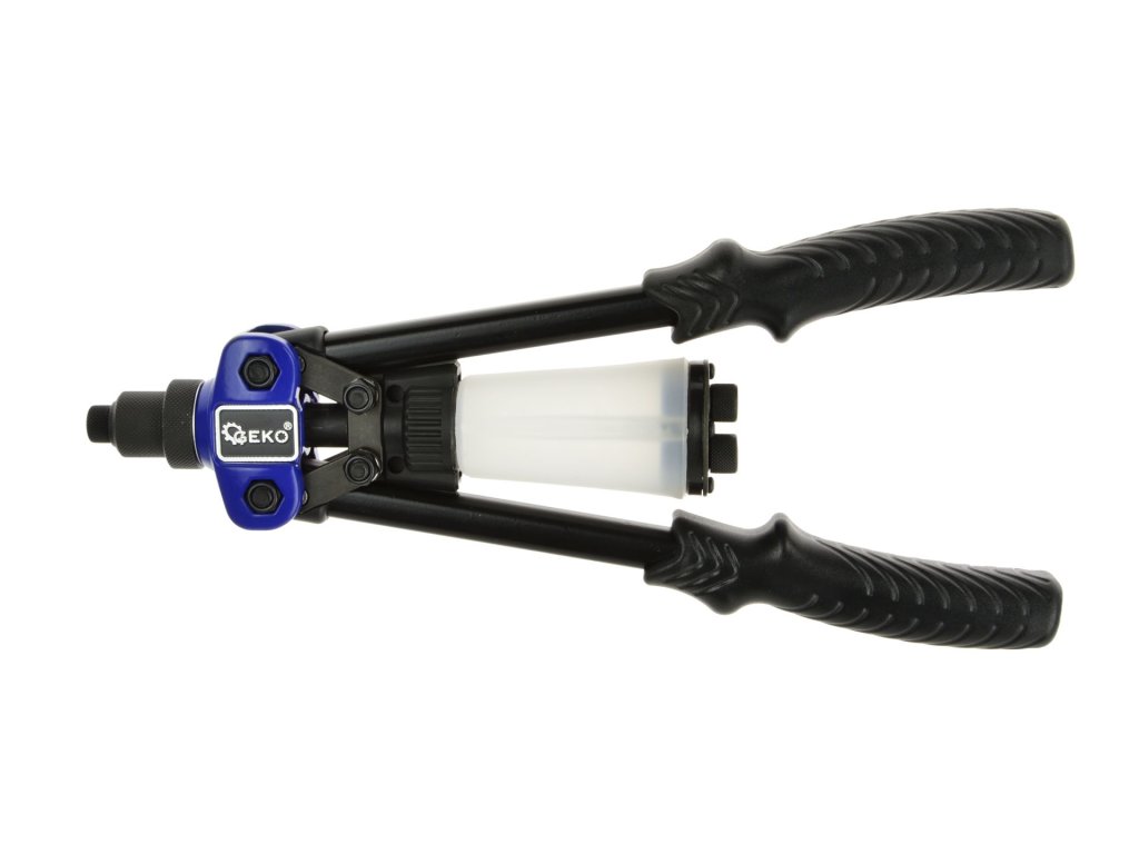 Páková nitovačka na trhacie nity, dĺžka 330 mm, 5 adaptérov, so zásobníkom na odpad - GEKO G01356