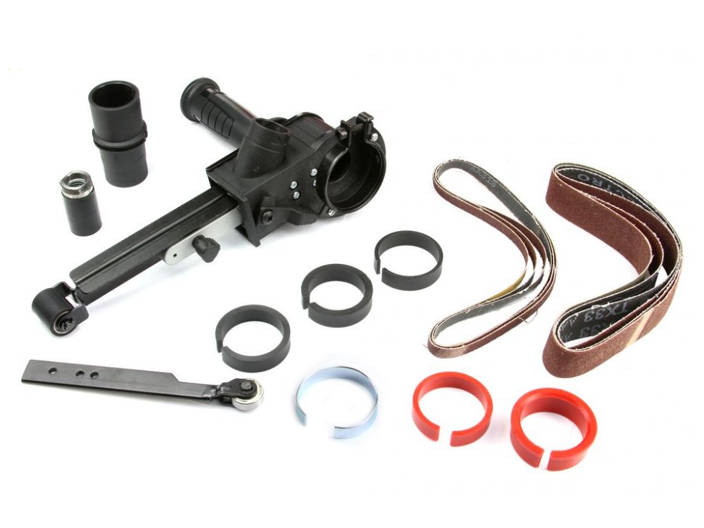 Nástavec umožňuje lepšie vedenie a presnejšie brúsenie v ťažko prístupných oblastiach. Nástavec má zámok, ktorý umožňuje výmenu brúsneho pásu za menej ako minútu, ako aj gombík na napnutie pásu, aby vám počas práce nespadol.