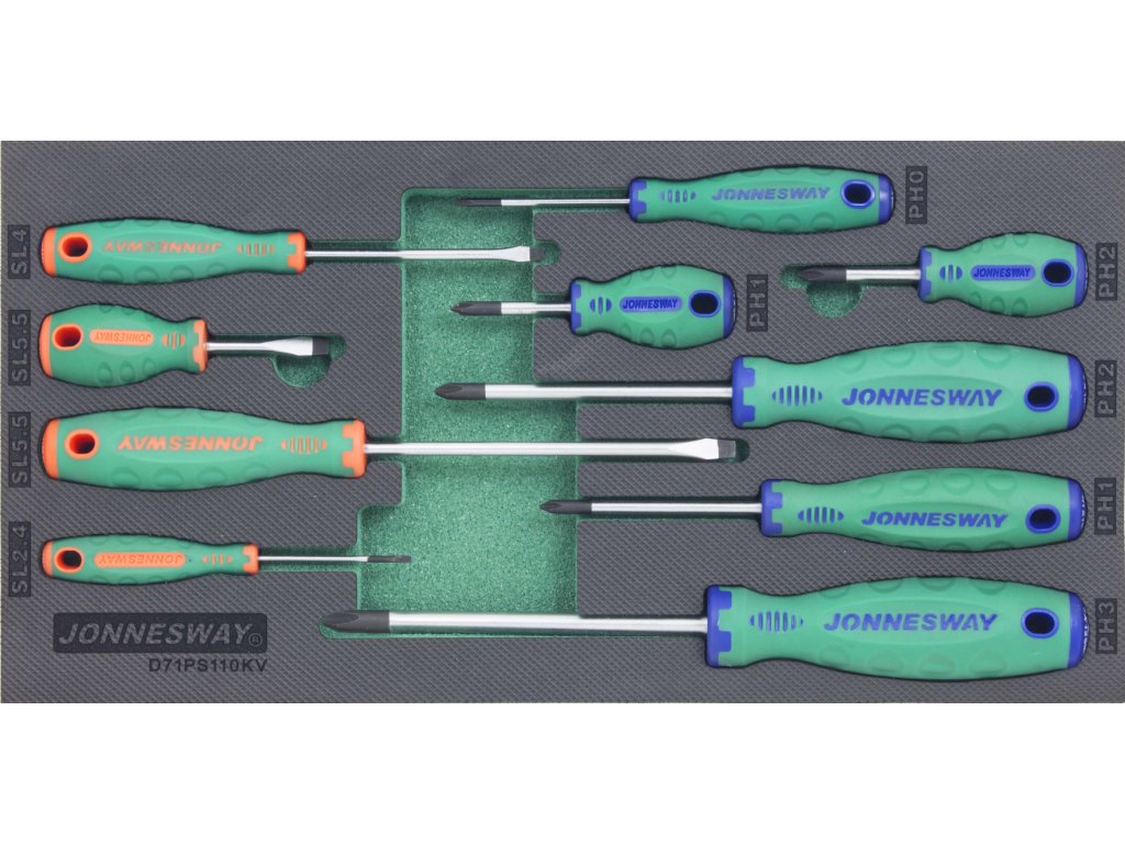 Modul penový - skrutkovače ploché a krížové, sada 10 ks - JONNESWAY D71PS110KV