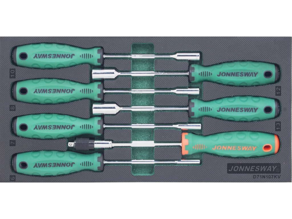 Modul penový - skrutkovače na matice a rukoväť s kardanom, sada 7 ks - JONNESWAY D71N107KV