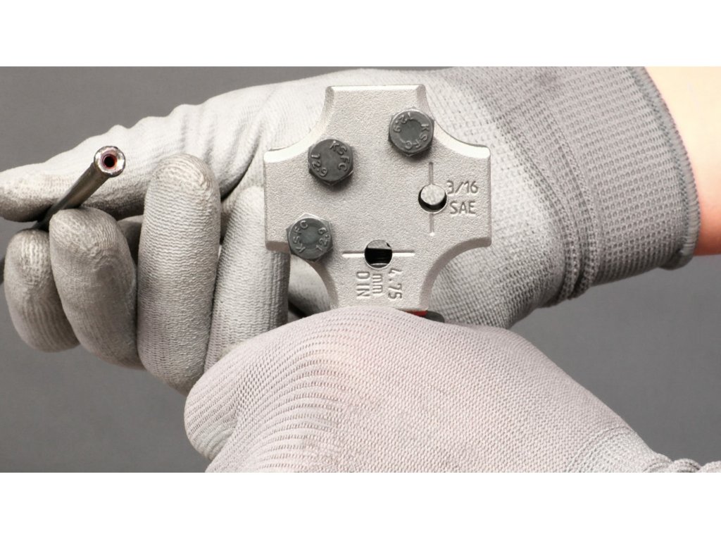 - Pertlovačka pre lemovanie vedenie s priemerom 4,75 mm podľa štandardov DIN a SAE