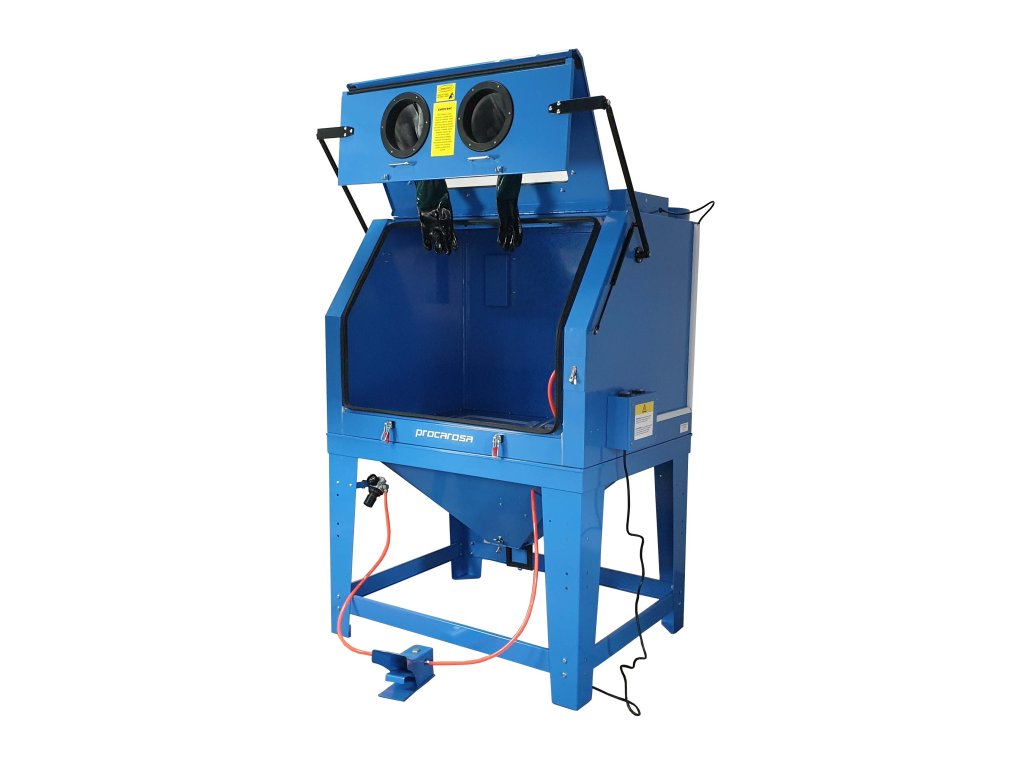 Vlastnosti pieskovacieho boxu Procarosa PROFI990: Hlavná vlastnosťou je nadpriemerne veľký pracovný priestor na pieskovanie. Pieskovaný predmet ľahko vložíte i vyberiete vďaka veľkým skladacím dverám na hydraulických piestoch. Box má veľmi pohodlné a intuitívne ovládanie. Súčasťou boxu je priemyselná pieskovacia pištoľ injektorového typu, nožný pedál slúži na zapínanie a vypínanie tryskacieho procesu. Ovládací panel má stroj umiestnený na boku a je tak ešte viac dostupný obsluhu ako predtým. Samozrejmosť je regulátor tlaku s manometrom.