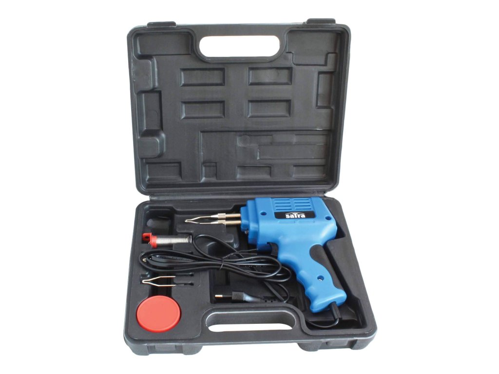 Elektrická spájkovacia pištoľ SATRA S-SG98C (tzv. spájkovacia pištoľ) Ideálna na spájkovacie práce v autoservise, dielni a v domácnosti. Súprava príslušenstva obsahuje náhradné spájkovacie hroty, živicu a spájkovaciu cín. Technické údaje.