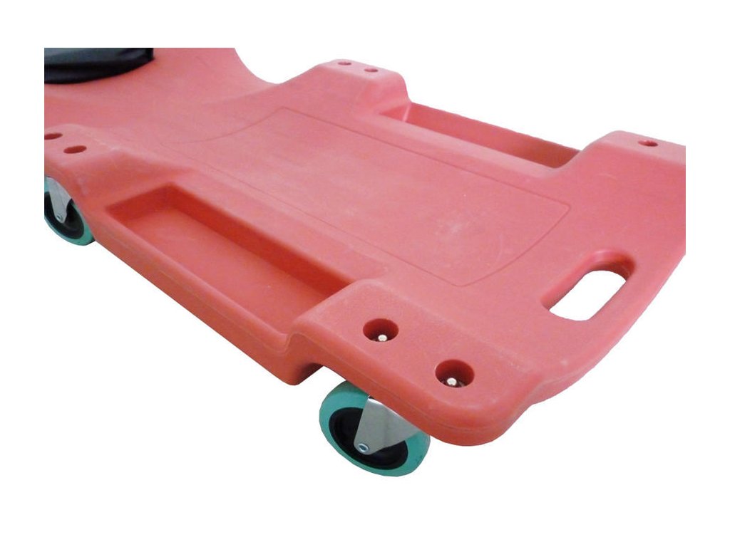 Praktická pomôcka pre jednoduchý prístup pod opravované vozidlo. Vďaka 6 kolieskam sa s ňou ľahko manévruje akýmkoľvek smerom. Po stranách sú dva priestory pre bezpečné odloženie drobností (skrutky, matice, náradie a pod.), Dobrú viditeľnosť aj v temných miestach zaručuje integrovaná LED lampička.