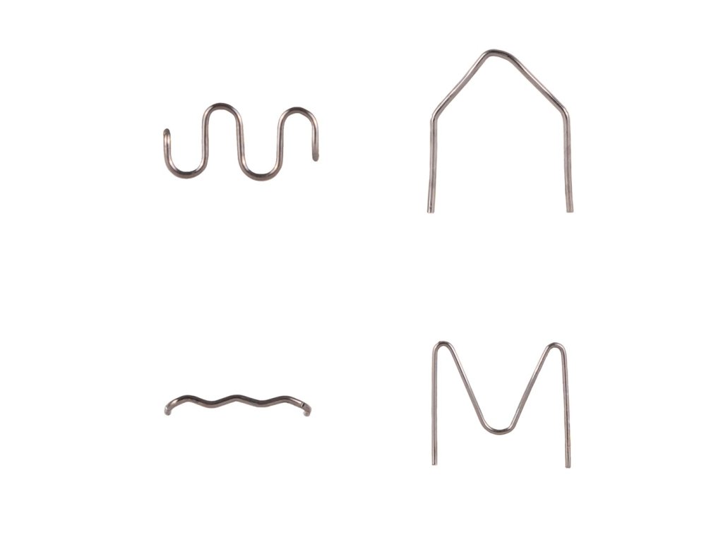 Súprava obsahuje 200 oceľových sponiek štyroch rôznych typov, ktoré umožňujú prispôsobiť nástroj rôznym typom plastov a projektov.