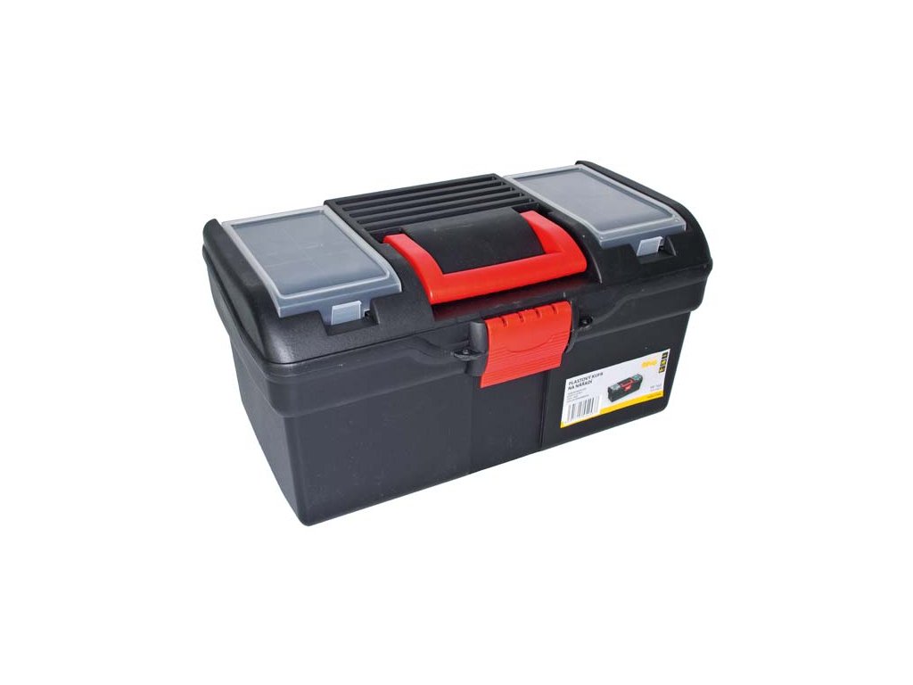 Plastový kufor na náradie 394 x 215 x 195 mm, s 1 priehradkou a 2 zásobníky - MAGG PP163