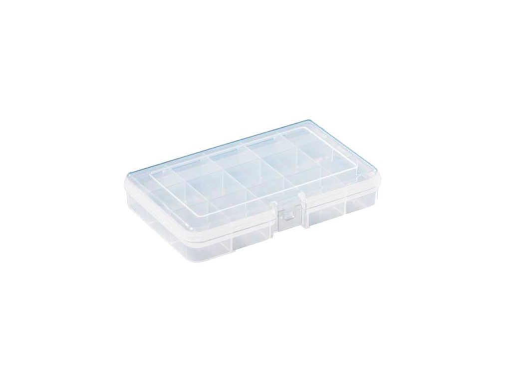 Kompaktný a praktický plastový organizér na uskladnenie a prenos menších predmetov (malé kusy náradie - napr. Bity, spojovací materiál - skrutky, matky atď.). Vďaka celkom 15 pevným priehradkám máte jednotlivé druhy rozdelené a nepomíchají sa.