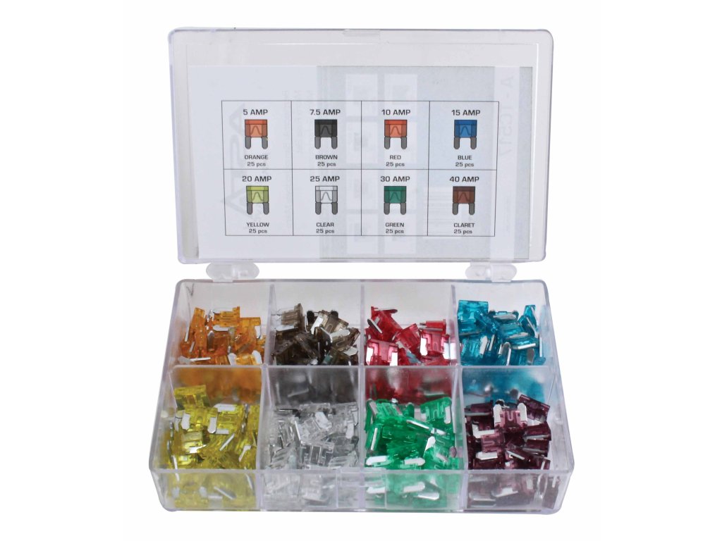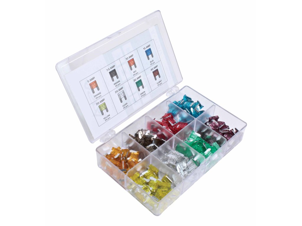 Poistky mikro (menšie) ploché nožové, pre palubné elektroinštaláciu automobilov a motoriek, sada 200 kusov v plastovej krabičke - ASTA A-TC517
