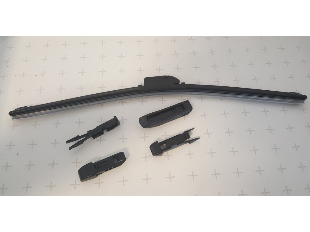 Vysoko kvalitný plochý stierač so sadou adaptérov pre väčšinu ramienok typu hak, s čapom a ploché.