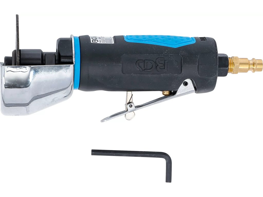 Krátke prevedenie pre perfektný prístup do úzkych priestorov. Určené pre disky pr. 75 mm, vŕtanie 10 mm, hrúbka 1,5 mm. Otáčky na prázdno: 20 000 ot./min. Spotreba vzduchu: 127 l / min Pracovný tlak: 6,3 bar (90 PSI) Pripojenie: 6,3 mm (1/4") Odporúčaný pr. hadice: 10 mm (vnútorný pr.) Rozmery: 185x80 mm Hmotnosť: 0,78 kg |