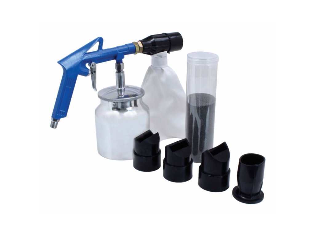 Pneumatická pieskovacia pištoľ, so sadou trysiek a balením tryskacieho prostriedku - SATRA