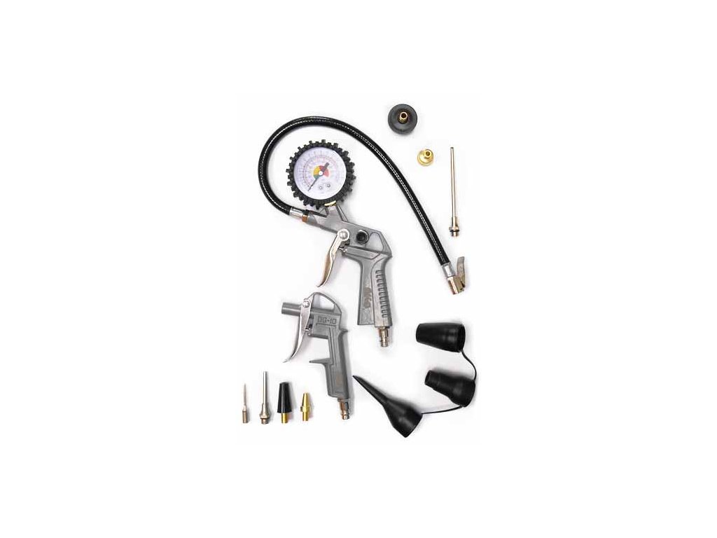 Pneumatická sada - pneuhustič s manometrom, ofukovacia pištoľ s nadstavcami, 12 dielov