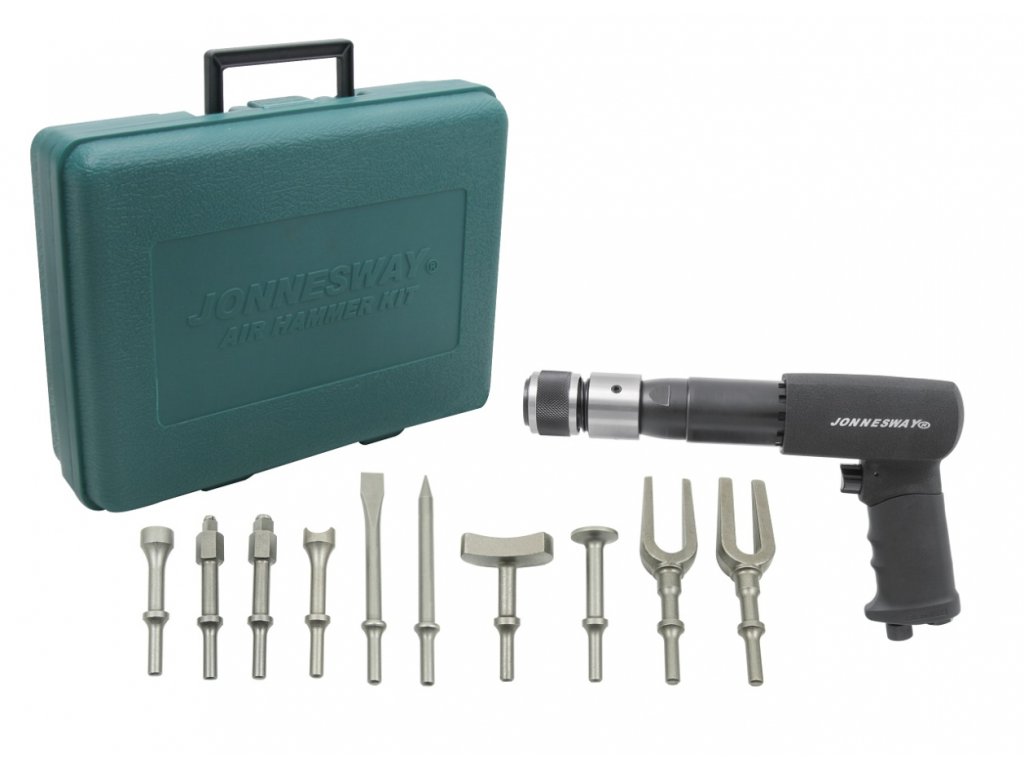 Kladivo na vzduchový (pneumatický) pohon, univerzálny, sada 10 pracovných nadstavcov, v plastovom kufri - JONNESWAY JAH-310K