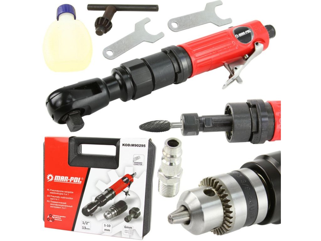 Pneumatické multifunkčné náradie 3v1 - priama brúska, vŕtačka, račňa, 6,3bar
