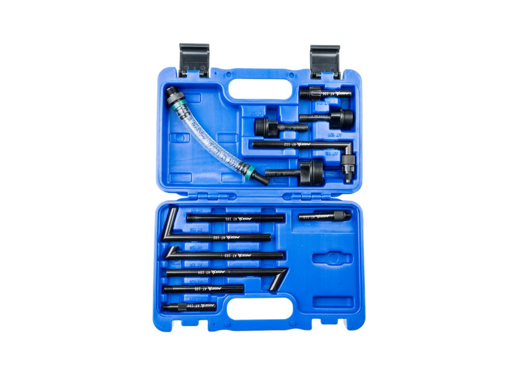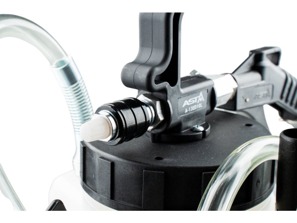 Pre vytvorenie podtlaku je nutné vytiahnuť pretlakový ventil a namiesto neho namontovať trysku, ktorá je naskrutkovaná na tele nádoby. V sade je 13 adaptérov pre najbežnejšie vozidlá.