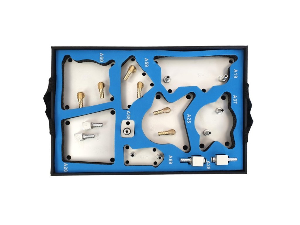 Sada obsahuje základný univerzálny sadu pripojovacích adaptérov, rozšírenú o ďalších 56 kusov pre jednotlivé typy prevodoviek. Prístroj je tak využiteľný pre servis drvivej väčšiny vozidiel na našich cestách.