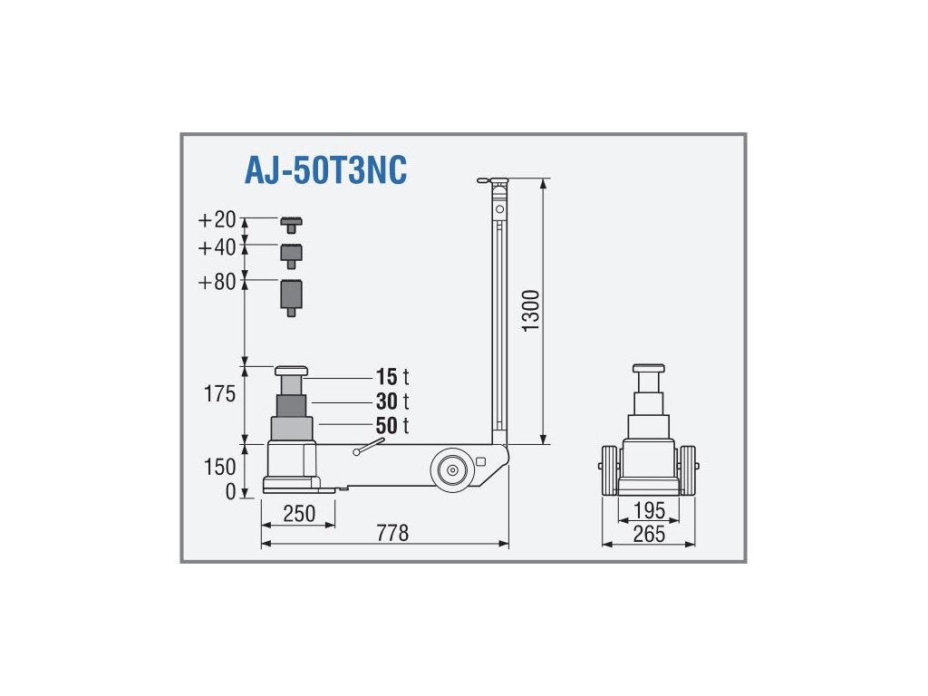 Pneumaticko-hydraulický zdvihák pojazdný 50/30/15 t, 150 - 325 mm - Kunzer