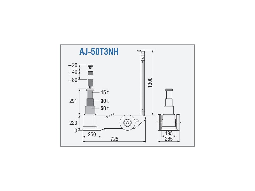 Konštrukcia dlhá 725 mm umožňuje pohodlne zájsť pod zdvíhané vozidlo a dostať sa na zdvíhacie body.