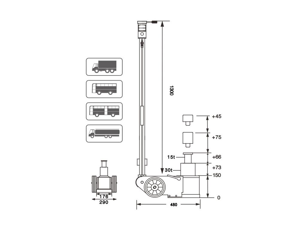 Zdvihák pneumaticko-hydraulický S30-2EL, 30 / 15t, dvojpiestový