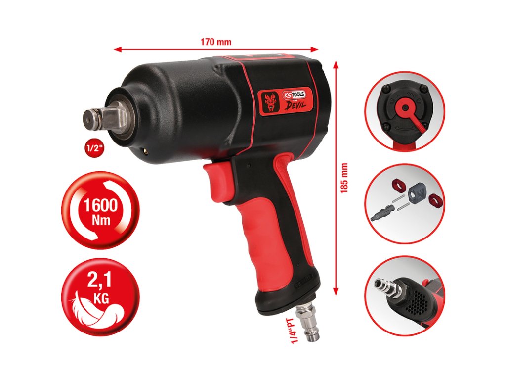Pneumatický rázový uťahovák 1/2 "1600 Nm - KS TOOLS 515.1200 The Devil