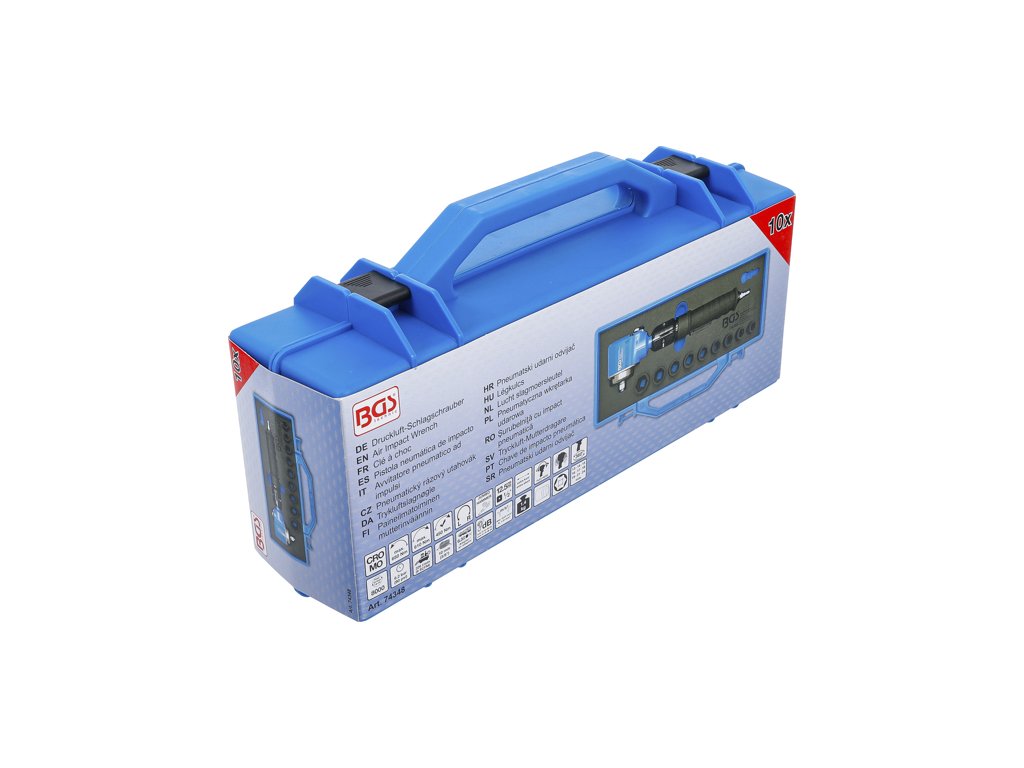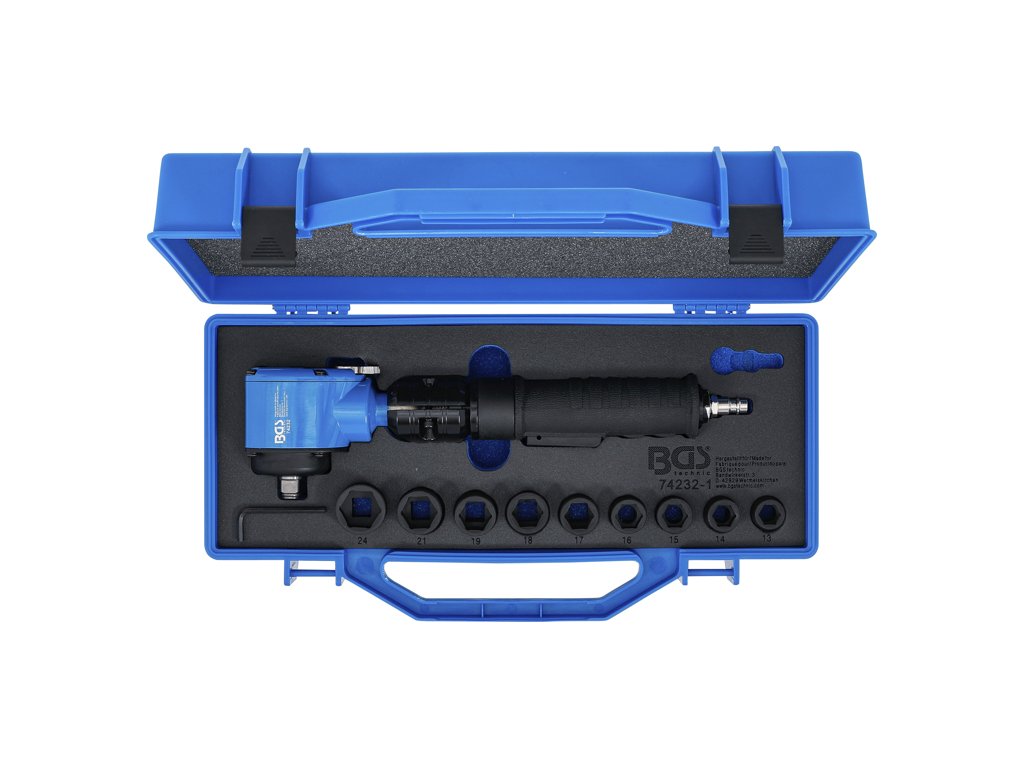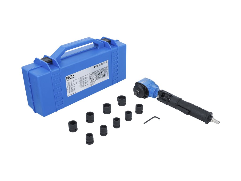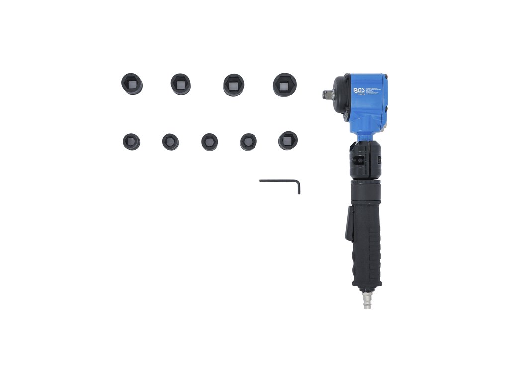 Pneumatický rázový uťahovák 1/2", 650N, uhlový, s nástrčkami 13-24 mm, 10 ks - BGS 74348
