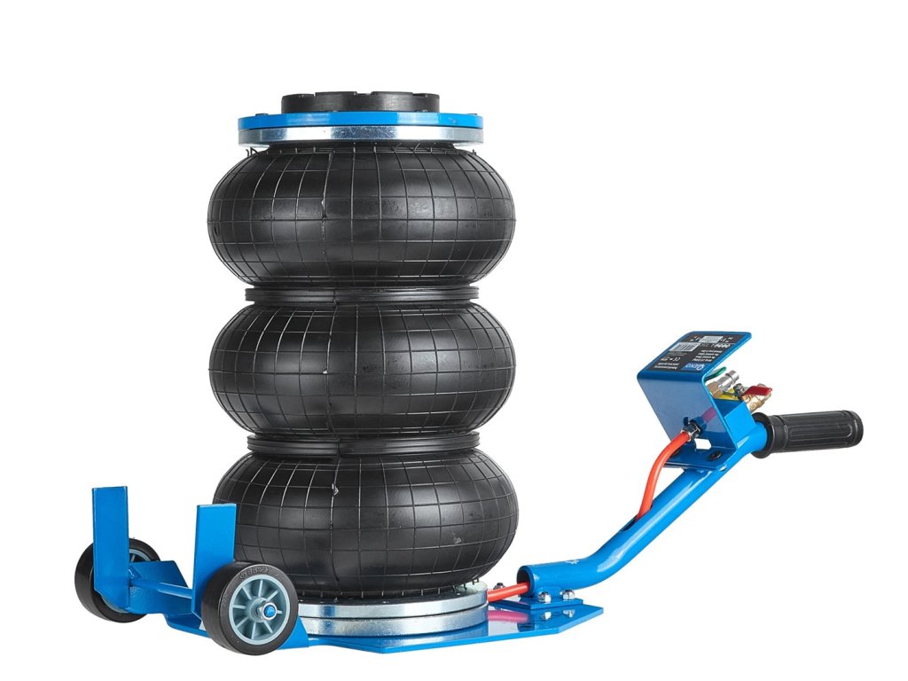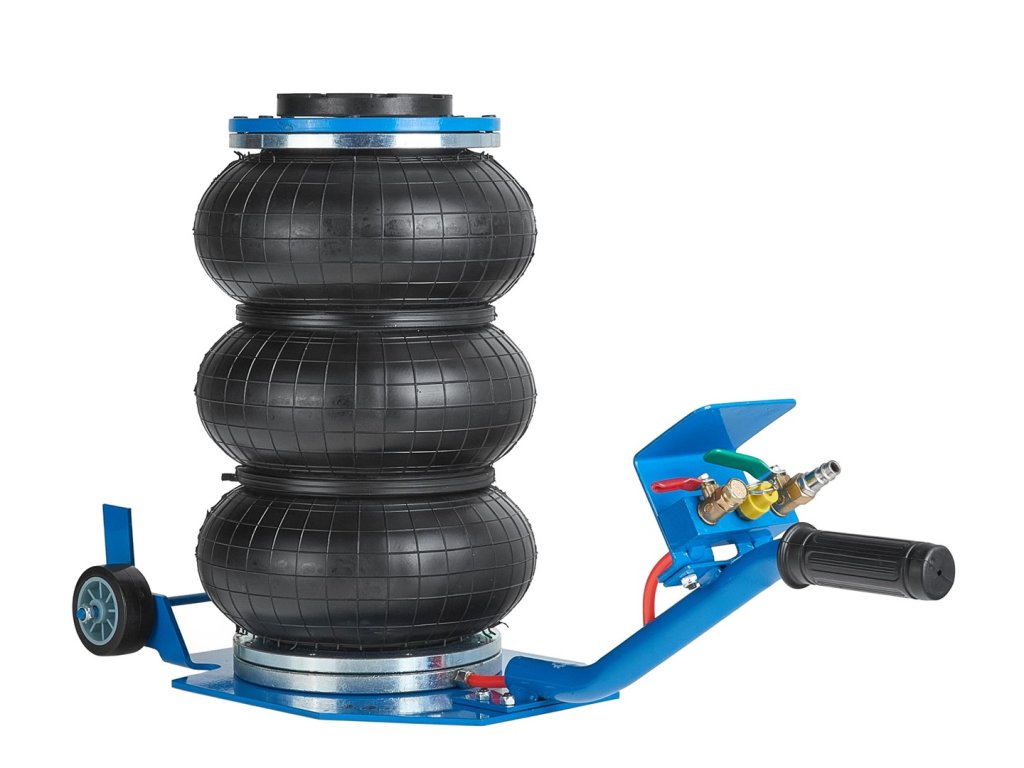 Pneumatický vlnovcový zdvihák, tzv. "snehuliak", nosnosť 3,5 t, rozsah zdvihu 150-400 mm, pracovný tlak 8-12 barov, krátka rukoväť