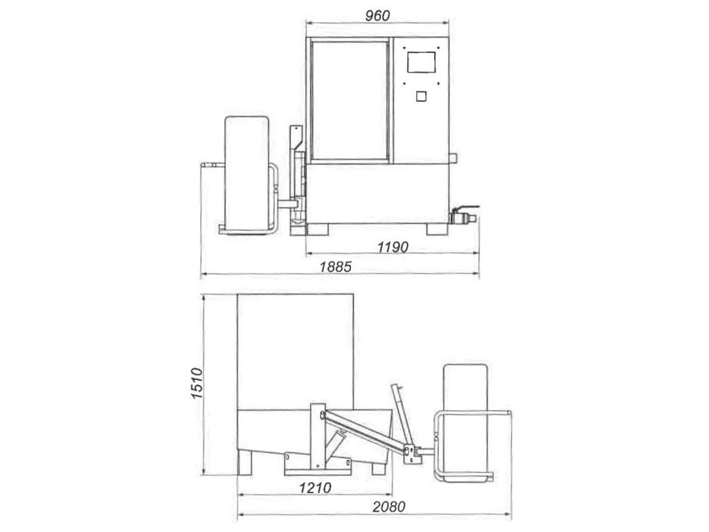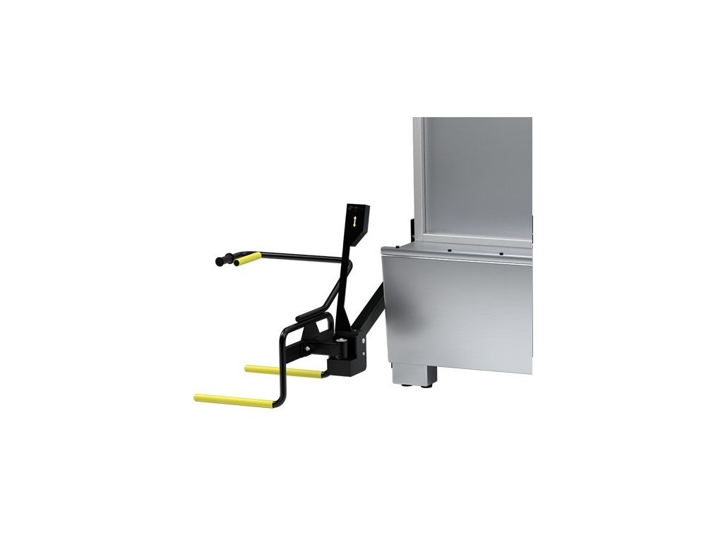 Zdvíhacie rameno na nakládku a vykládku kolesá do umývačky. Výšku koša reguluje ovládací ventil pohonu (hore - dole). Otočný pohyb zdvíhacieho koša (zľava doprava) sa vykonáva ručne.