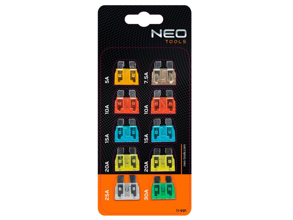 Autopoistky, 5-30 A, plochý nôž, polykarbonátové puzdro, 10 ks - NEO tools 11-991.