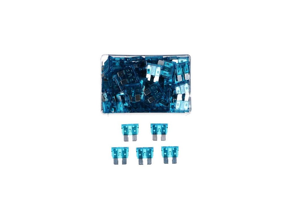 Praktická sada štandardných automobilových poistiek SIXTOL FUSE SET, ktorá nájde uplatnenie v každom bežnom vozidle alebo motocykli. Sada obsahuje 100 kusov nožových poistiek s menovitým výkonom 15 A, ktoré sú odlíšené modrou farbou. Poistky sú vyrobené v súlade s normou ISO8820. Každá poistka je na vrchnej strane označená príslušným menovitým prúdom, aby bolo možné poistky ľahko rozlíšiť. Celá súprava je uložená v praktickom plastovom kufríku s priehradkami.Obsah súpravy: