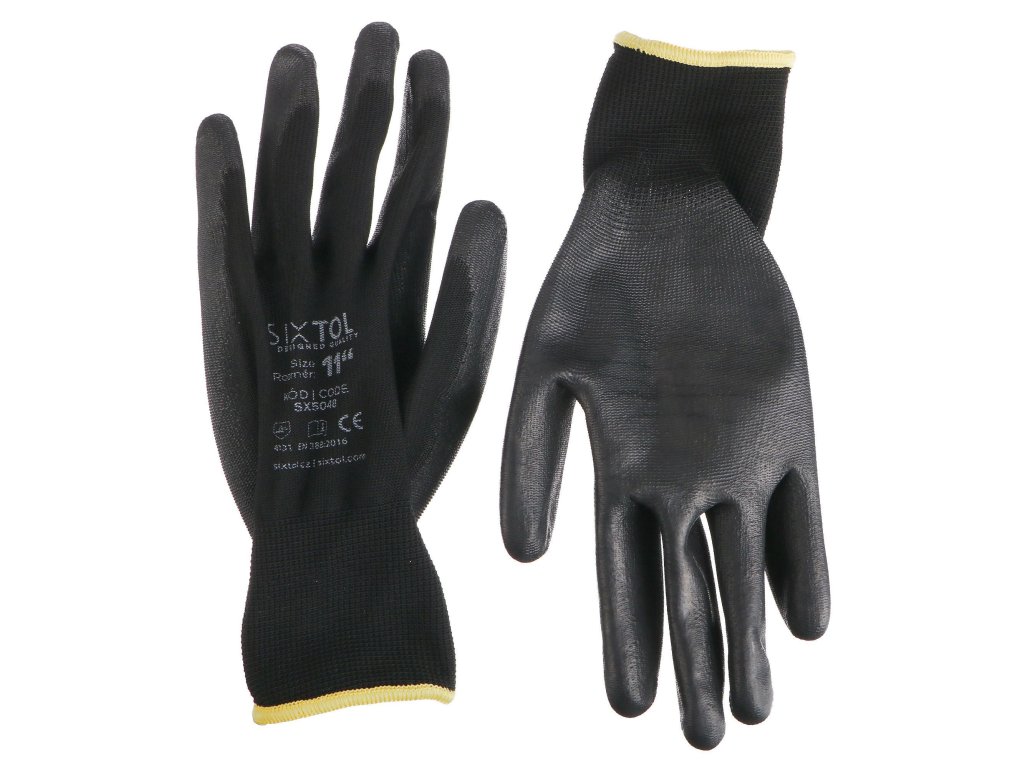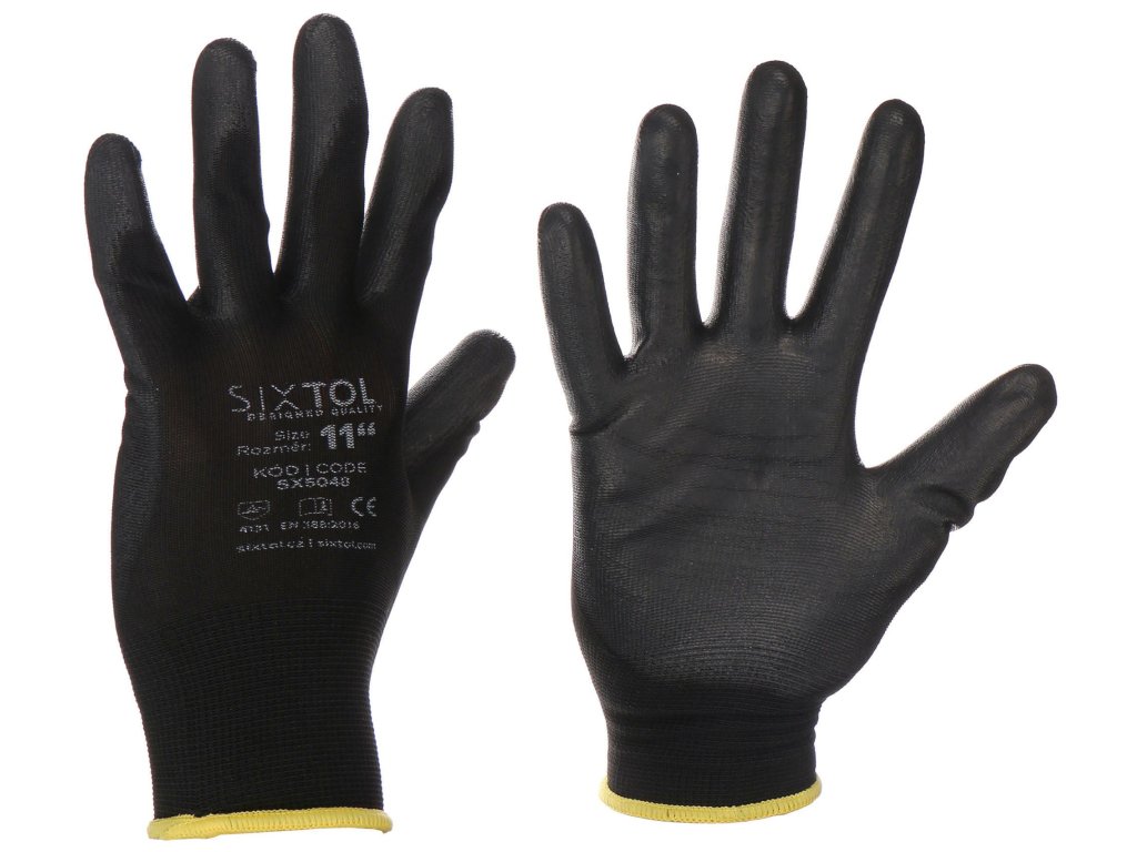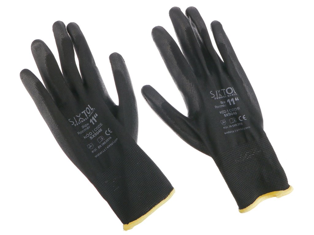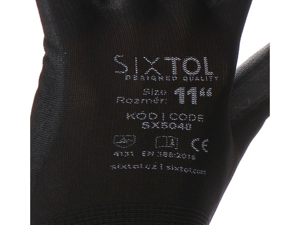 Čierne, polyesterové pracovné rukavice z polyuretánu vo veľkosti 11" - SIXTOL SX5048