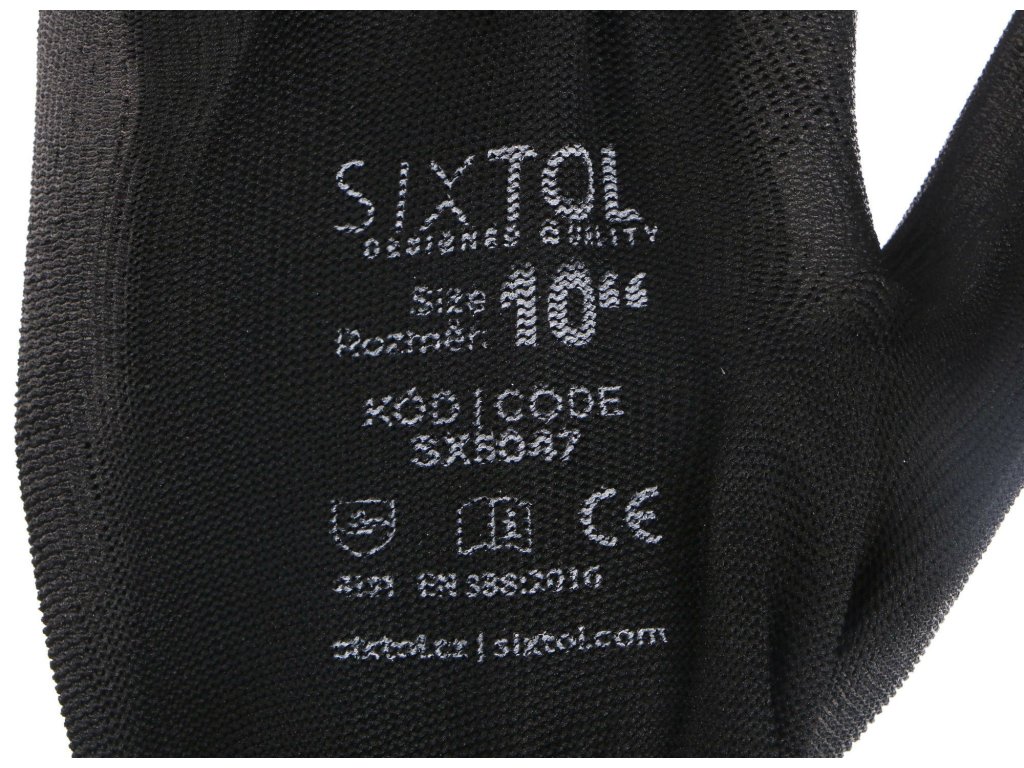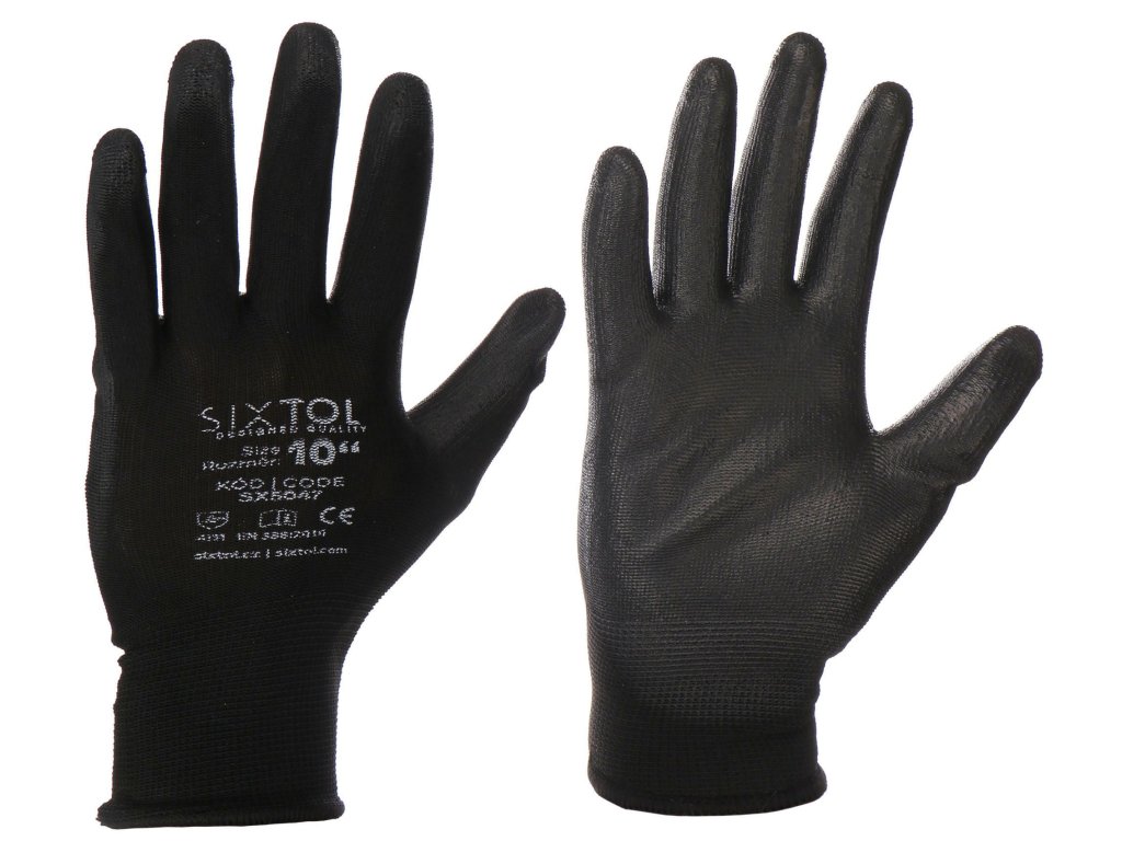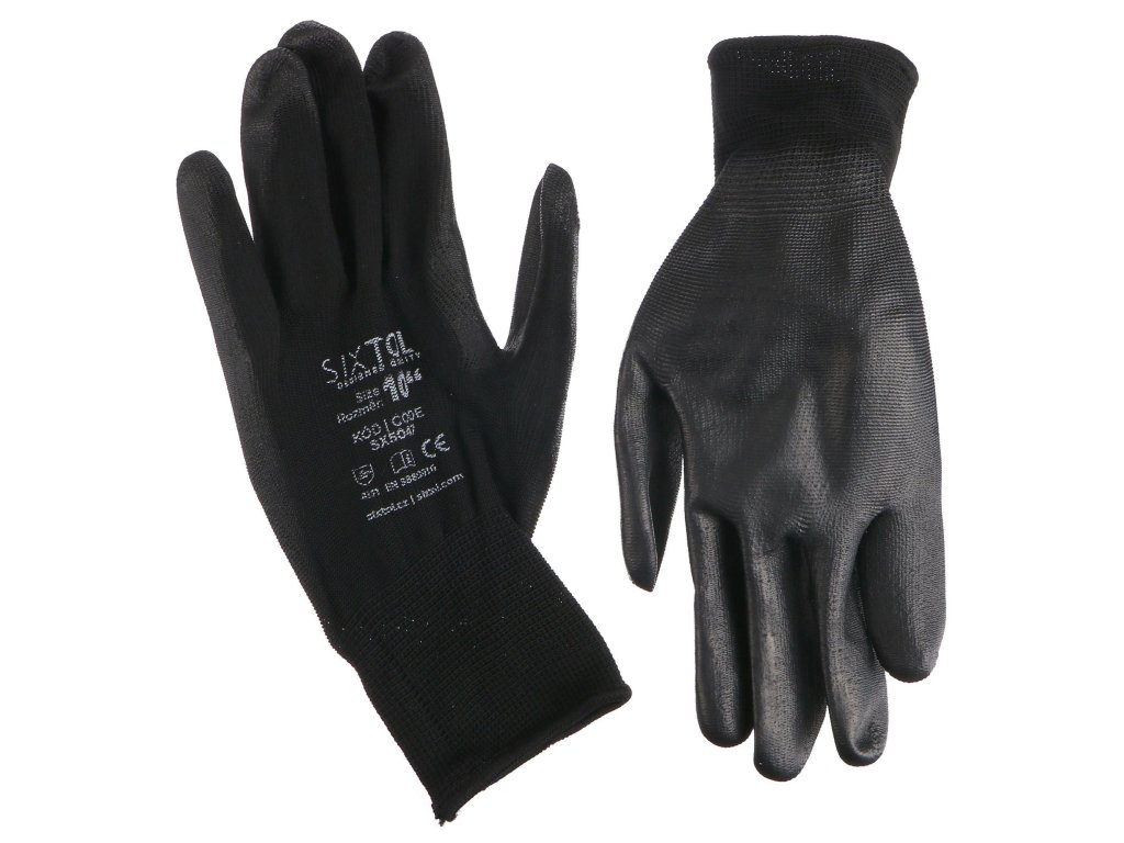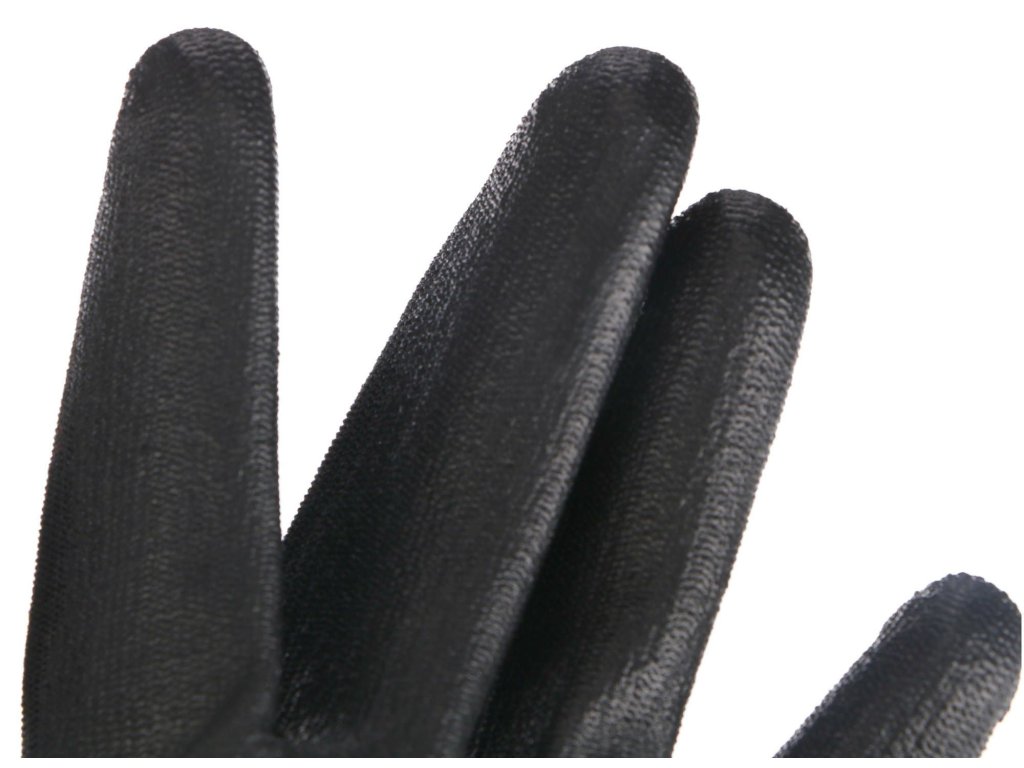 Čierne, polyesterové pracovné rukavice, polomokré z polyuretánu vo veľkosti 10"
